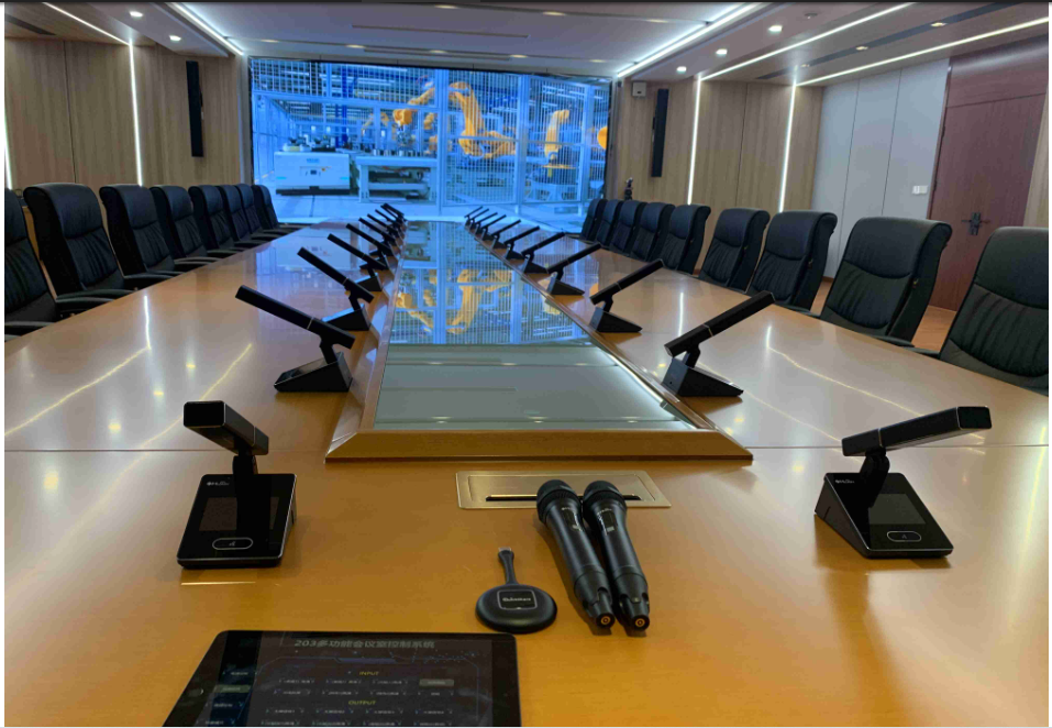 公司为会议发言配置双振膜触控式会议单元HY-6320系列,支持数量限制、先进先出、后进先出、主席允许、限时发言、排队发言、自由讨论共八种会议模式,以适应多种类型会议场合。