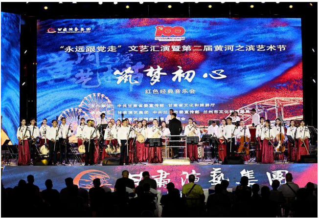 由甘肃省委宣传部、甘肃省文化和旅游厅主办,甘肃演艺集团、兰州市委宣传部、兰州市文化和旅游局承办,兰州黄河风情线大景区管委会协办的“永远跟党走”文艺汇演暨第二届黄河之滨艺术节,7月11日晚在兰州体育文化广场拉开帷幕。
