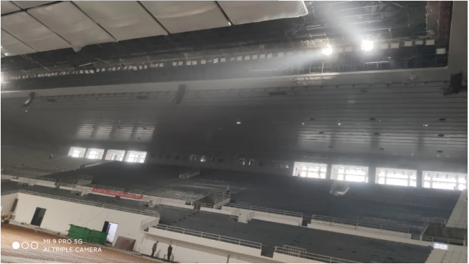 天博国际有限公司现场总负责人林社麟先生说道:“麻豆三级片免费观看现场进行安装工作的时间十分有限,因此麻豆三级片免费观看在地面上把线阵列音箱组装起来,并按照模拟软件NS-1计算出来的角度和方向,调整好每个音箱,再把音箱吊挂到离地面十多米的位置固定好。再通过Dante网络在电脑上使用NeMo软件远程操控。将音量,增益,延时,分频点及输出跳线设置好,并对音箱进行检查。最后这个体育馆具有声压均衡且高清晰度的效果。”