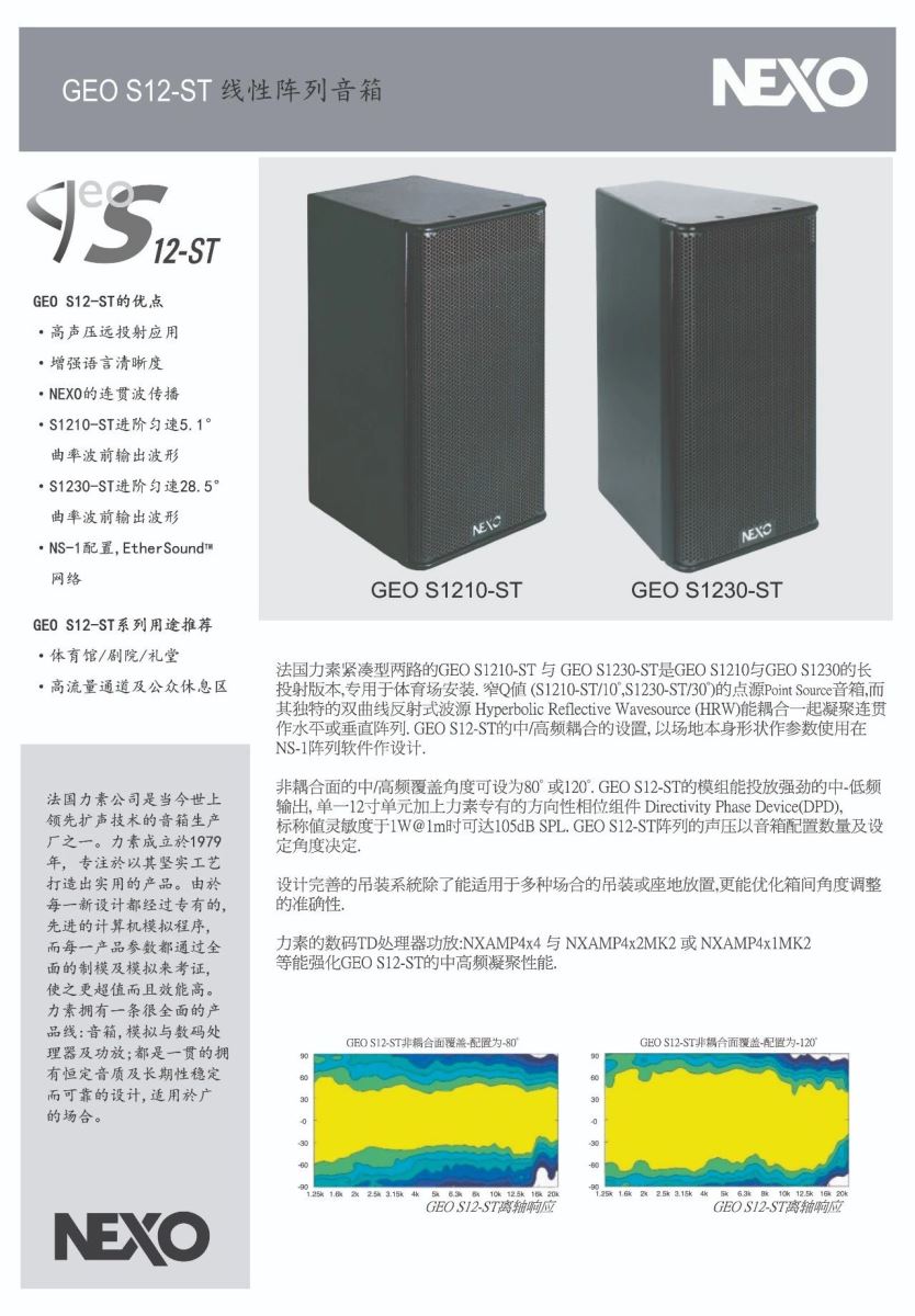 音箱系统由5组NEXO GEO S12-ST线阵列音箱与9组NEXO GEO S12组成,采用NEXO仿真模拟软件NS-1计算来决定GEO S12和GEO S12-ST音箱的数量,保证每组线阵列的投射能力。通过垂直和水平控制,进一步加强GEO S12与GEO S12-ST双曲线反射波源。而比赛场地则以8只NEXO 最新款点声源音箱P12做垂直指向。分别由NEXO专用功放NXAMP4x4与NXAMP4x1mk2提供电力驱动,并通过Dante网络进行控制,这一新系统解决了首都体育馆所有音频问题。14组数量不一的音箱为所有座位提供了一致的声压覆盖,并在不违反体育赛事中严格要求的噪音规定下,声压级有了明显的提升。