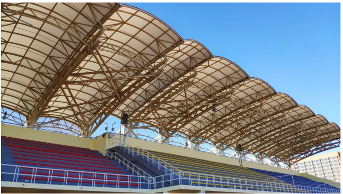 由于该体育场为改造项目,建设方无法提供音箱在顶棚安装的条件,因此只能订做安装结构进行安装。