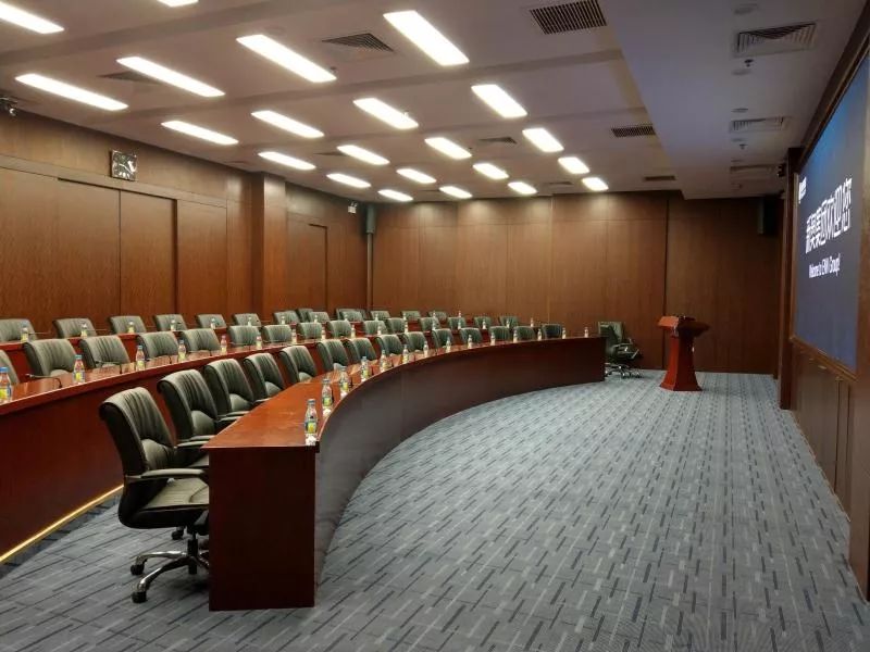 410董事局会议室长11.77m、宽6.8m、高2.8m,面积约80㎡,可容纳坐席31个,主要用于董事局内部会议、工作汇报、日常会议等。