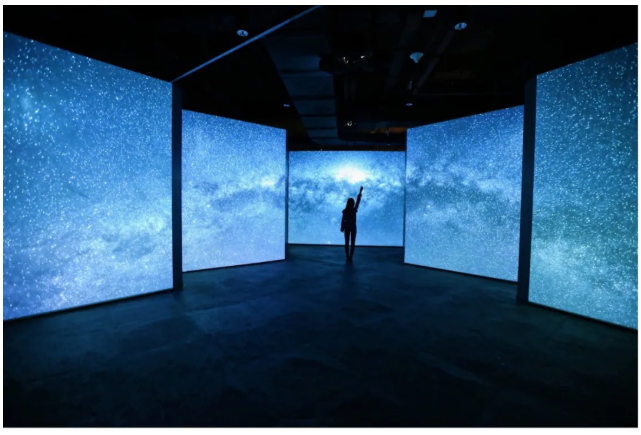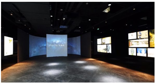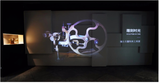 其中“五联屏时空穿越厅”,展现穿梭时空的震撼,引出时间的产生与意义。通过上下三台CB-L1060投影钟表的链条,展示飞亚达表的文化和历史。利用佳能投影机独有的自带0.54:1的镜头,通过有限的空间,展示出大画面和细腻的图像,还原飞亚达的钟表历史,诠释出历史与未来的演变。