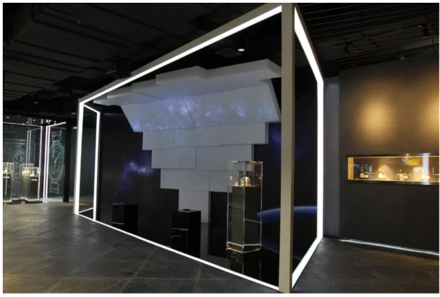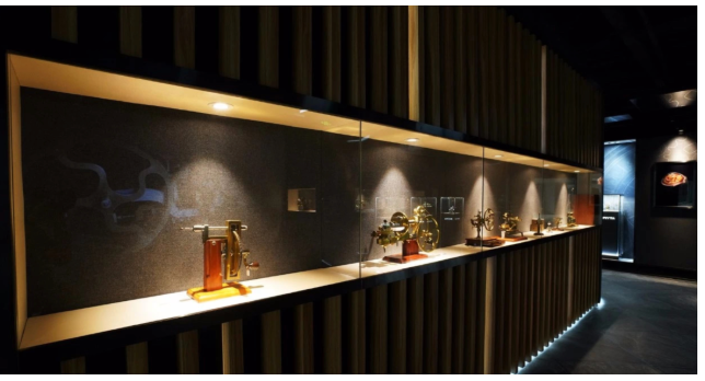 本工程飞亚达博物馆博物馆分为一层和二层两个部分。一层主要以企业展厅为主,可用面积为700㎡左右。展示内容囊括了飞亚达企业轨迹及品牌产品推介两部分,以飞亚达品牌时间线为纲,通过灯光和投影的配合,展现出“时间简史”、“逢时而生”、“审时而动“、“应时而显”、“驭时而创”五大主题区域,演绎出飞亚达的企业崛起之路。在这里,观众可以感受到飞亚达对时间的认知,对生活的主张,深刻体会到飞亚达品牌的内涵底蕴和工匠精神。