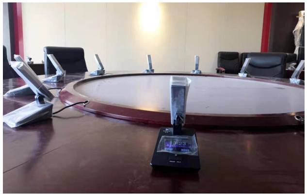 作为智慧音视频会议领域的创新者,DIGIRATE迪吉瑞也全程参与了长春红旗创新大厦的建设,为大厦内的众多会议室提供了完整智能会议系统解决方案,得到用户的高度赞赏。其中在最重要的圆桌会议室提供了X系列数字会议系统,X系列会议话筒专门服务于高端会议市场,话筒采用短咪杆,高灵敏度设计,外观简洁大气,话筒咪芯部分采用橡胶避震材料,尽可能的避免台面噪声对话筒拾音的影响。话筒的另一大特色是在话筒上增加一块分辨率为480×320的3.5寸全彩色电容式触摸显示屏。不仅可以满足正常的发言管理,还支持图片显示,话筒请求服务功能,可以根据实际会议情况显示指定的图片。话筒的外观造型上采用金属氧化面板,简洁硬朗的外观设计表现出简约庄重的会议设备风格。