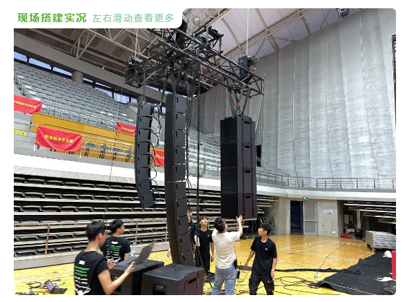 此外,这次系统的安装搭建和撤场拆卸都很快速、便捷,吊点做好十几分钟就可以开始音箱的吊挂工作,配套的连接线缆方便整洁。单侧共有24只有源音箱只需要一条19芯电源线和一条4路信号线就完成了,相比常规功放驱动的无源系统要省时省力很多。