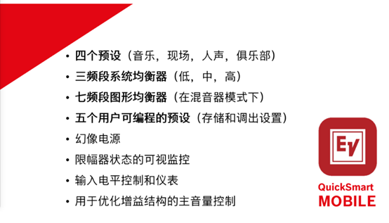 只需一根以太网网线,配合移动端的 QuickSmart mobiles应用程序(可通过Apple App Store和Google Play下载),两台音柱与移动设备便可完成配对,并可以完全混合控制这两台设备,输出无损的数字音频。