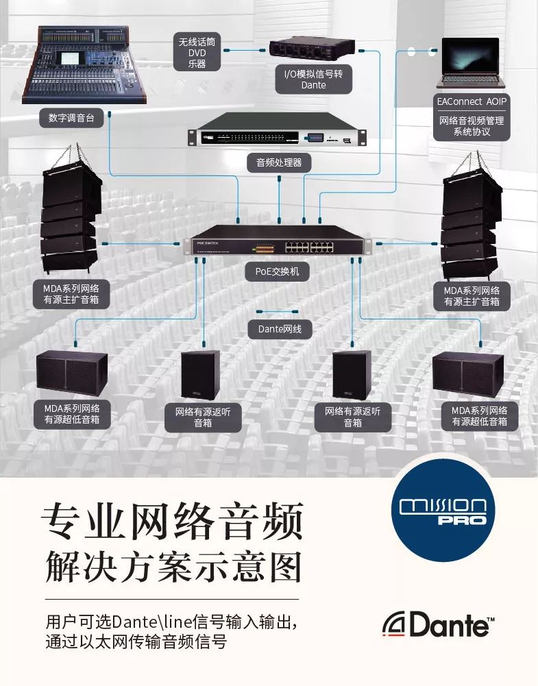 现在是Dante的时代了,Mission Pro音响带你进入音频传输新选择