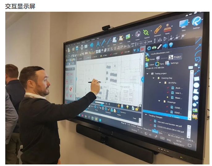 上的图符或文字就能实现对主机操作,这样摆脱了键盘和鼠标操作,使人机交互更为直截了当。常见的类型包括交互LCD显示屏、交互框产品、交互一体机、交互桌面、会议室协作平台、体感影像。