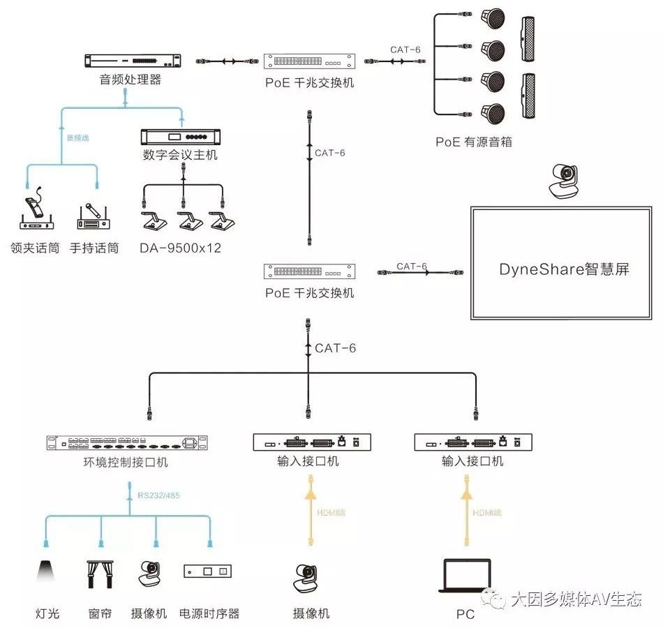 企业会议室用分布式DANTE全网络化IoT解决方案