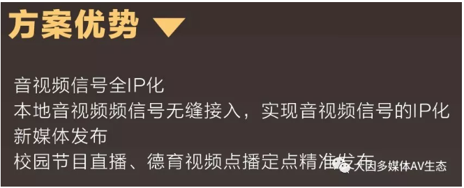 校园一体化演播室主要以全媒体信号采集设备为依托,校园网络为基础,数字视频、课件为内容,数字化管理、发布平台为核心,校园网络电视台为中介,在各类终端以及多媒体教室接收观看,移动终端随时随地在线学习。精品课件、校园电视台直播节目、专家讲座等各种直播或者点播视频、图片、文字通过校园信息化之后,收看端可通过移动终端、多媒体教室、办公室电脑等实时在线直播或点播。