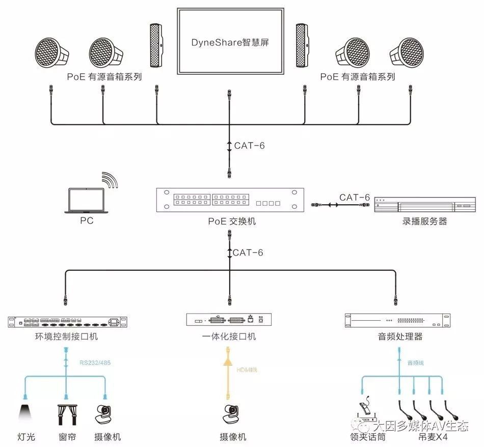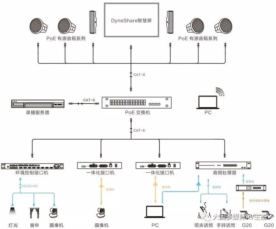 教室是学校最常见的场所,但是教室的大小、用途、使用人(教室和学生)却不尽相同。虽然有所区别,但每间教室授课时所需要的音视频系统非常类似。此类音视频系统的建设必须方便教师的使用,而且也要满足学生清晰明了地观看和聆听上课内容,老师上课的内容和分析方便学生打包带走。不仅如此,系统的使用必须简单,方便教师和学生的独自使用。