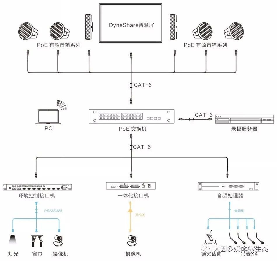 DANACOID通过DyneCloud 智慧云屏系统,打造教育行业的全IP化的解决方案,通过分布在教室内的输入输出接口机和智慧云屏系统将音频、视频、控制信号通过网络进行传输、管理和控制,实现教室与教室、学校与学校、学校与教育局之间的信息交互。