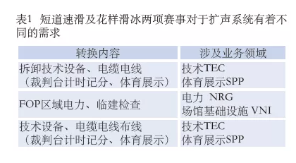 • 冬奥会期间,短道速滑及花样滑冰两项赛事对于扩声系统有着不同的需求,如表1所示,并且转换时间短,只有半天的时间。