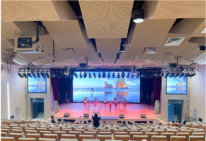 学校的多功能厅为本次的项目场地。多功能厅可容纳600多名学生,配备升降麻豆三级片免费观看和专业的音响设备,主要用于会议、学术报告、文艺戏剧类节目演出,同时要兼顾音乐演奏、歌舞的演出要求,在功能上将其定位为一座多功能剧场。