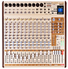 16路小型调音台,10路麦克风/4组立体声输入,可用PC和MAC电脑连接的立体声USB音频接口 (24-bit, 48 KHz),内置SD卡录播及2.4G蓝牙连接功能,4编组,可选机架安装组件(另购)。四个4段EQ立体声通道(两个带有XLR输入),3段EQ(单声道),32/40位DFX处理器,处理器有16个程序,每个程序都有一个用户可调参数,单声道75HZ低切滤波器,4个立体声AUX返回,效果可监视,具有INSERT和DIRECT OUT输出,20级立体电平表。