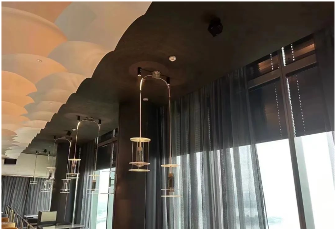 全体NEXO音箱吊挂部署,小体积且低调的外观,输出的声音清晰而优美,让它很好地融入到环境中。现场工作人员认真负责,很快就把音箱全部吊装起来。酒店方感到非常满意。