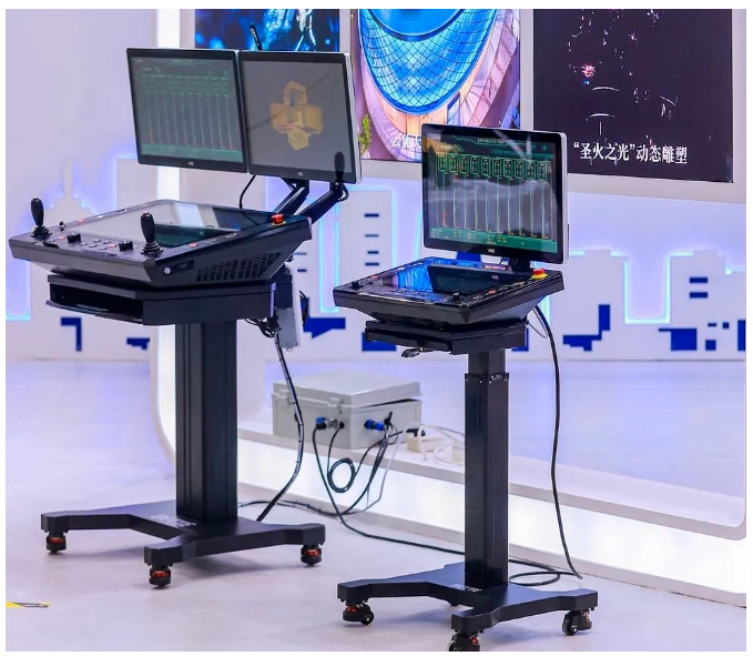 北特圣迪展出最新研发的两款新型麻豆三级片免费观看机械多信息集成交互控制台,该控制台对硬软件性能和操控性进行了双重提升,可实现高科技演艺装备在不同应用场景下的精准、快速、便捷控制,分为标准型和便携式两个型号。新型控制台人机交互界面更加友好,宽大的显示屏使信息承载量大幅提升。内置工控机装配强大CPU和高配置显卡,使得运行更为流畅。内置的高速通讯接口(Profinet、EtherCat等),可快速收发主PLC的控制指令,从而进一步提升信息传输的实时性和可靠性。