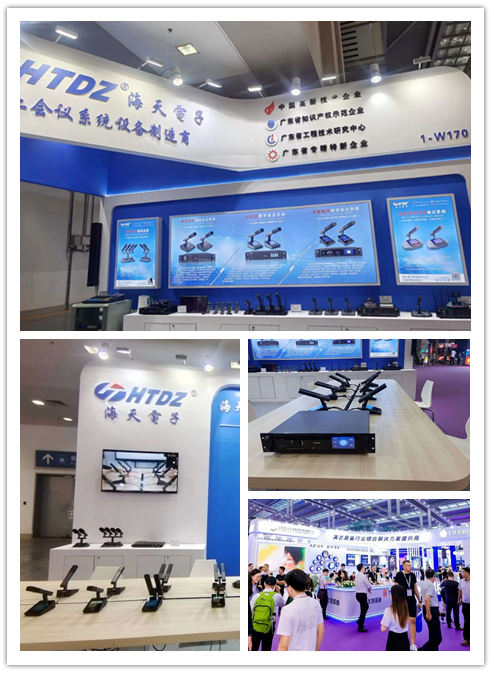 恩平市海天电子科技有限公司展会中展出了如意系列演讲话筒、数字红外无线会议系统、分区式数字会议系统、全屏触控数字会议系统、优先无线共用会议系统等。