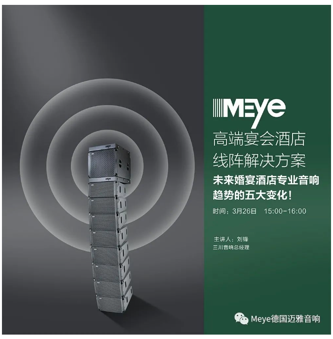近年来,Meye音响专注于五星级酒店、 高端婚庆主题宴会酒店、高端婚礼艺术中心领域,打造标杆化、系统化、高效化的专业扩音系统,已经成为中国宴会酒店音响知名品牌。
